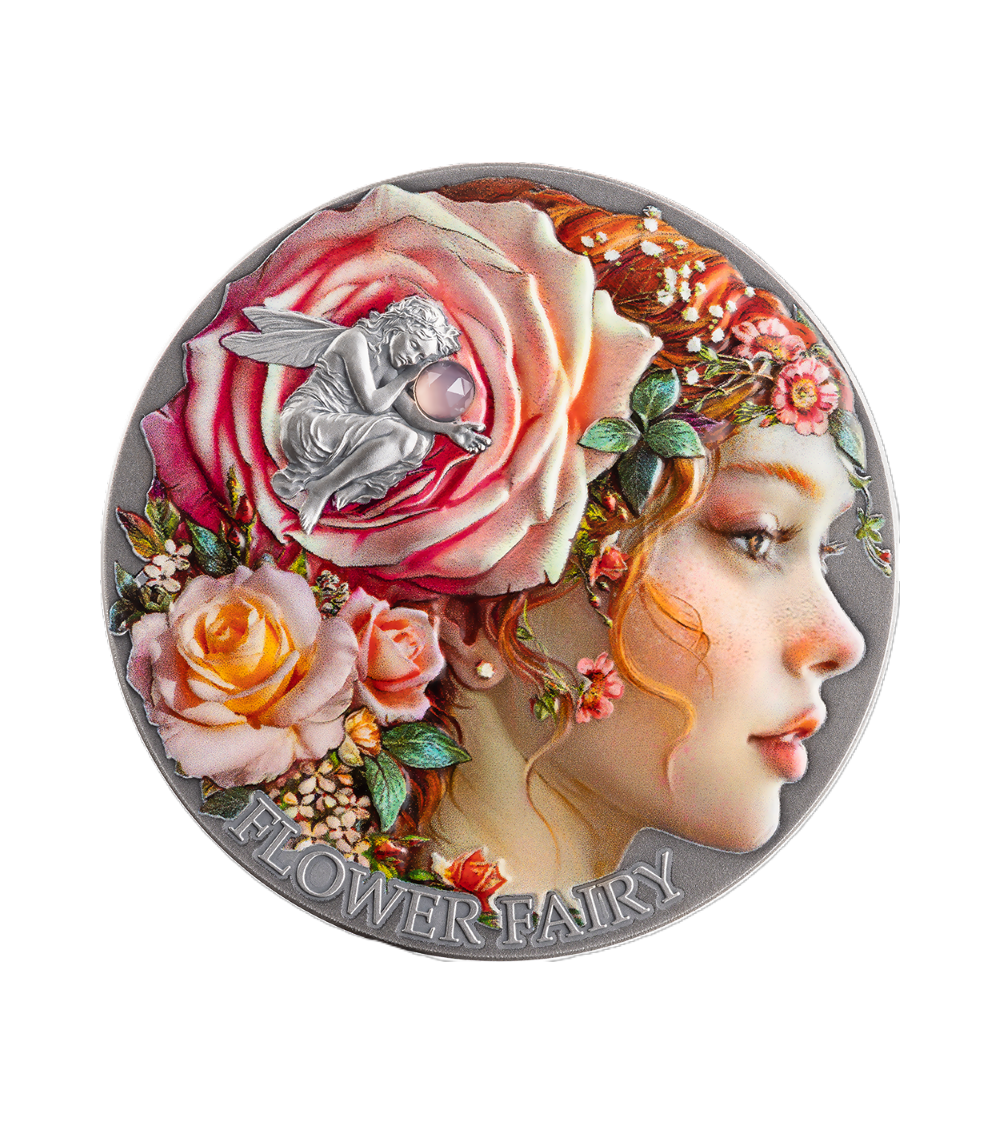 Przedstawiamy wyjątkowe dzieło sztuki menniczej, wykonane z czystego srebra próby Ag999 o wadze 2 uncji. Jej powierzchnia w wykończeniu antique nadaje całości szlachetny, lekko postarzały charakter, podkreślając każdy detal projektu. Centralnym motywem jest eteryczna wróżka kwiatów – symbol natury, delikatności i harmonii ze światem przyrody. Bogate zdobienia oraz precyzyjne reliefy tworzą niemal trójwymiarowy efekt, który przyciąga wzrok kolekcjonerów. To limitowana emisja, która łączy walory inwestycyjne z wyjątkową estetyką inspirowaną magicznym światem natury.