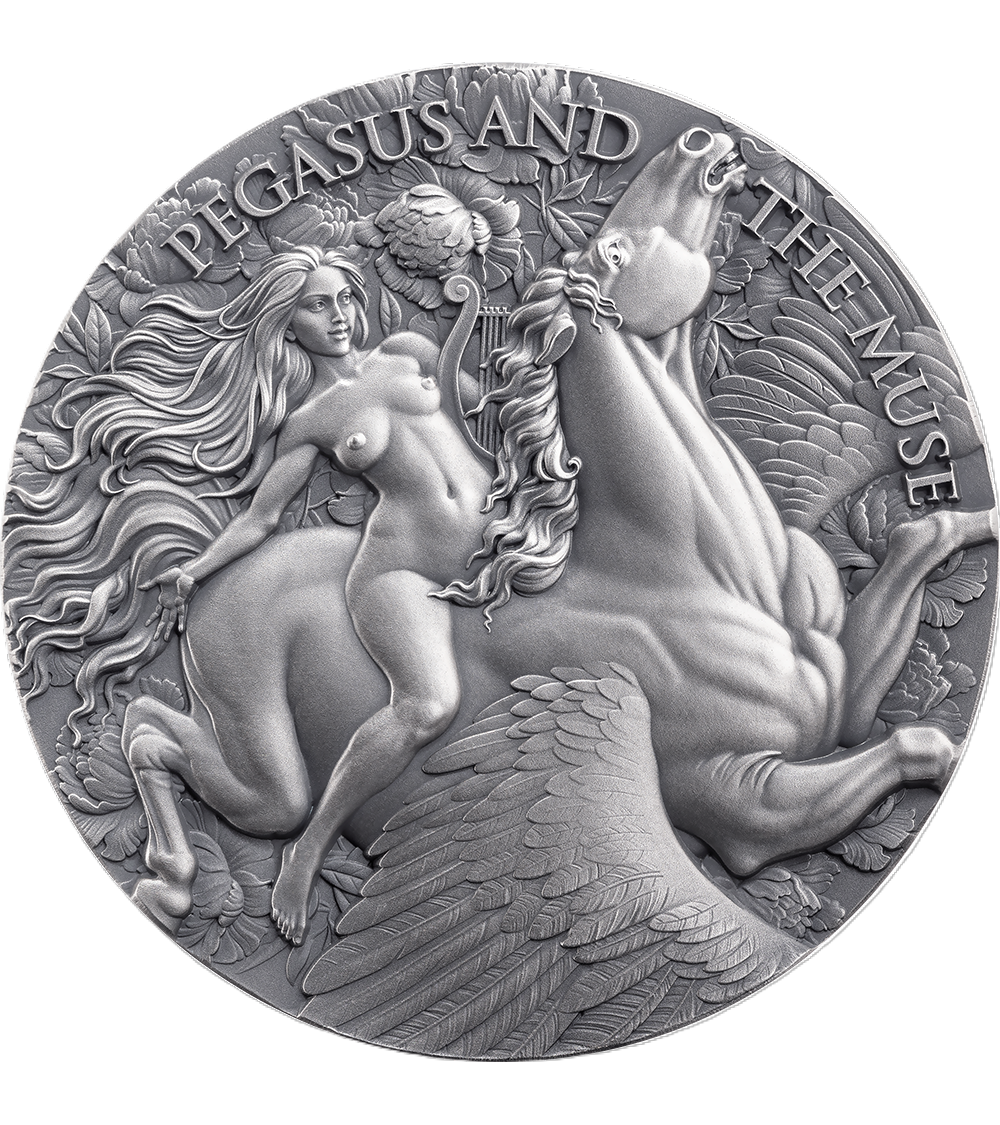 Z przyjemnością przedstawiamy monetę Cameroon 2026 – Pegasus and the Muse, wybita z 1 uncji czystego srebra Ag999. Jej wykończenie antique podkreśla głębię i kontrast misternie wykonanej, wysokorzeźbionej kompozycji. Motyw przedstawia majestatycznego Pegaza oraz Muzę, symbolizujących inspirację, kreatywność i piękno mitologii. Precyzyjne detale i harmonijne ujęcie nadają całości dynamiczny, niemal ożywiony charakter. Ta limitowana emisja łączy klasyczną mitologię z nowoczesnym kunsztem menniczym, tworząc wyjątkową propozycję dla kolekcjonerów.