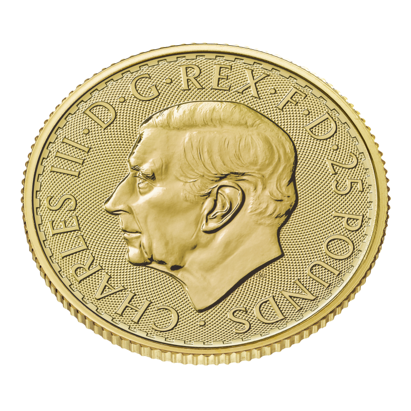 Rewers monety przedstawia tradycyjną postać Britannii uzbrojoną w tarczę, gałązkę oliwną oraz w trójząb. W jej otoczeniu znajdziemy informację na temat nazwy, czystości monety oraz masie złota. Projekt rewersu zawdzięczamy Philipowi Nathan, a awers wykonał Jody Clark. Na awersie ukazuje wizerunek Króla Karola III oraz informację o wartości nominalnej monety.